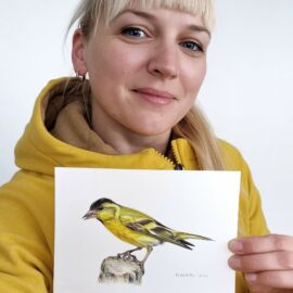 Marta Gotliba is a Latvian artist specializing in detailed illustrations and oil paintings, with a focus on birds, wildlife, and botanical subjects. Using coloured pencils in a multi-layering technique and oils in the classical painting tradition, she captures the essence and character of her subjects with precision and depth. Marta’s work emphasizes realism while preserving the emotional presence of nature’s inhabitants.